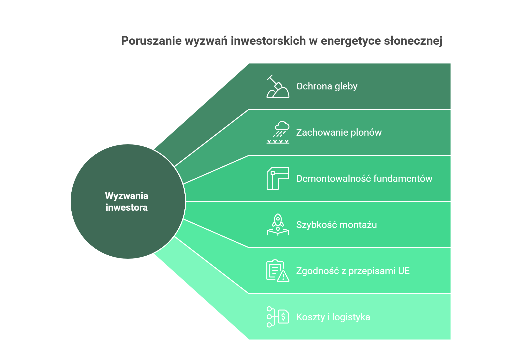 Ochrona gleby jest kluczowa – tradycyjne fundamenty betonowe mogą uszkodzić warstwy uprawne, wpływać na drenaż i zwiększać ryzyko erozji.